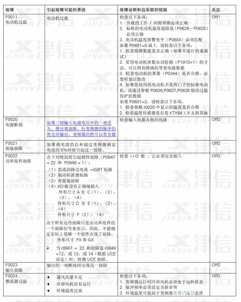 二、F0011電動(dòng)機(jī)過溫,F(xiàn)0020電源斷相,F(xiàn)0021接地故障,F(xiàn)0022功率組件故障,F(xiàn)0023輸出故障,F(xiàn)0024整流器過溫