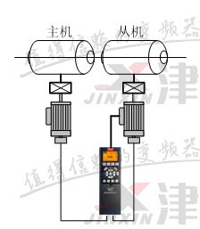 帶MCO305運動控制卡的FC302變頻器做從機,主機編碼器信號和從機編碼器信號同時接入運動控制卡,啟用“ SYNCP ”宏指令,就可以實現從機轉過的角度與主機轉過的角度成嚴格比例關系的控制功能。